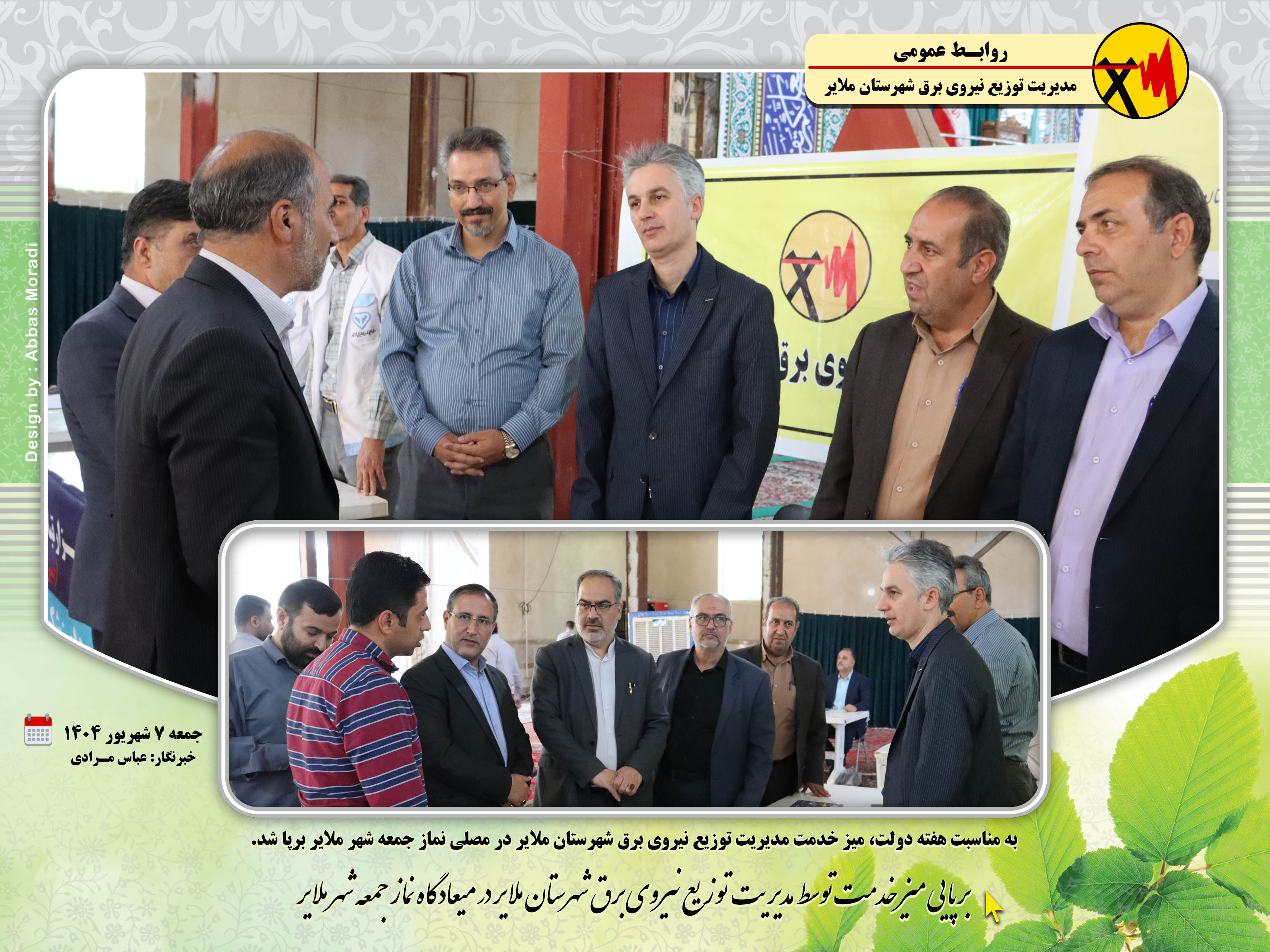 همزمان با ایام الله دهه مبارک فجر، میز خدمت مدیریت توزیع نیروی برق شهرستان ملایر با حضور سرپرست فرمانداری ویژه ملایر، معاونین فرمانداری،مدیران ادارات و دستگاه های اجرایی و خدمات رسان، پیش از برگزاری نماز جمعه در مصلی حضرت ابوالفضل(ع) شهرستان ملایر برپا شد. 1404/11/17 22:24:04