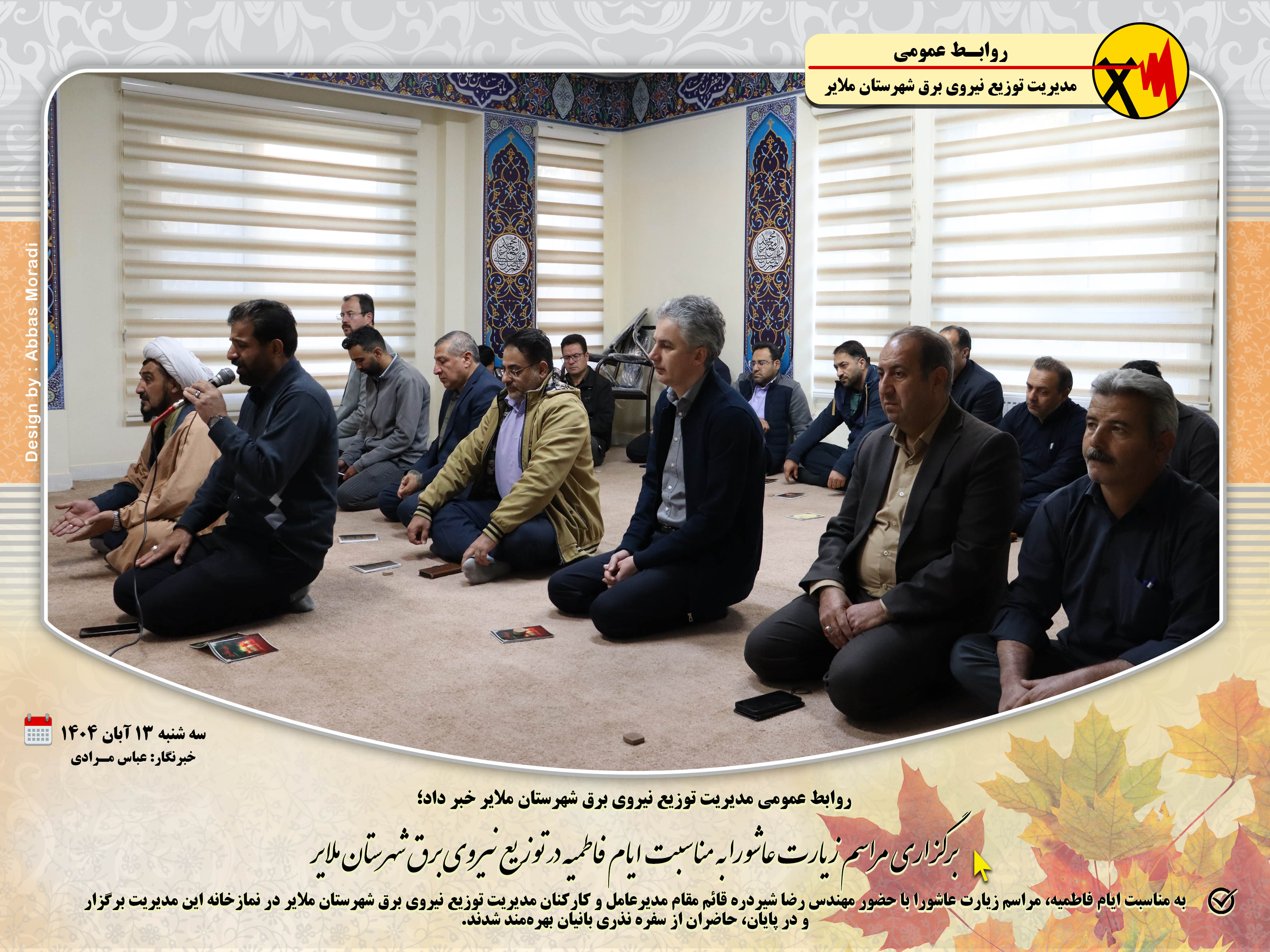 به مناسبت ایام فاطمیه، مراسم زیارت عاشورا با حضور مهندس رضا شیردره قائم مقام مدیرعامل و کارکنان مدیریت توزیع نیروی برق شهرستان ملایر در نمازخانه این مدیریت برگزار و در پایان، حاضران از سفره نذری بانیان بهرهمند شدند. 1404/8/13 21:06:37